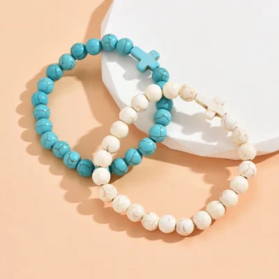 Pulsera de cuentas con cruz central y diseño equilibrado. Una pieza simple, cómoda y fácil de combinar todos los días. Ideal para usar sola o junto a otras pulseras.