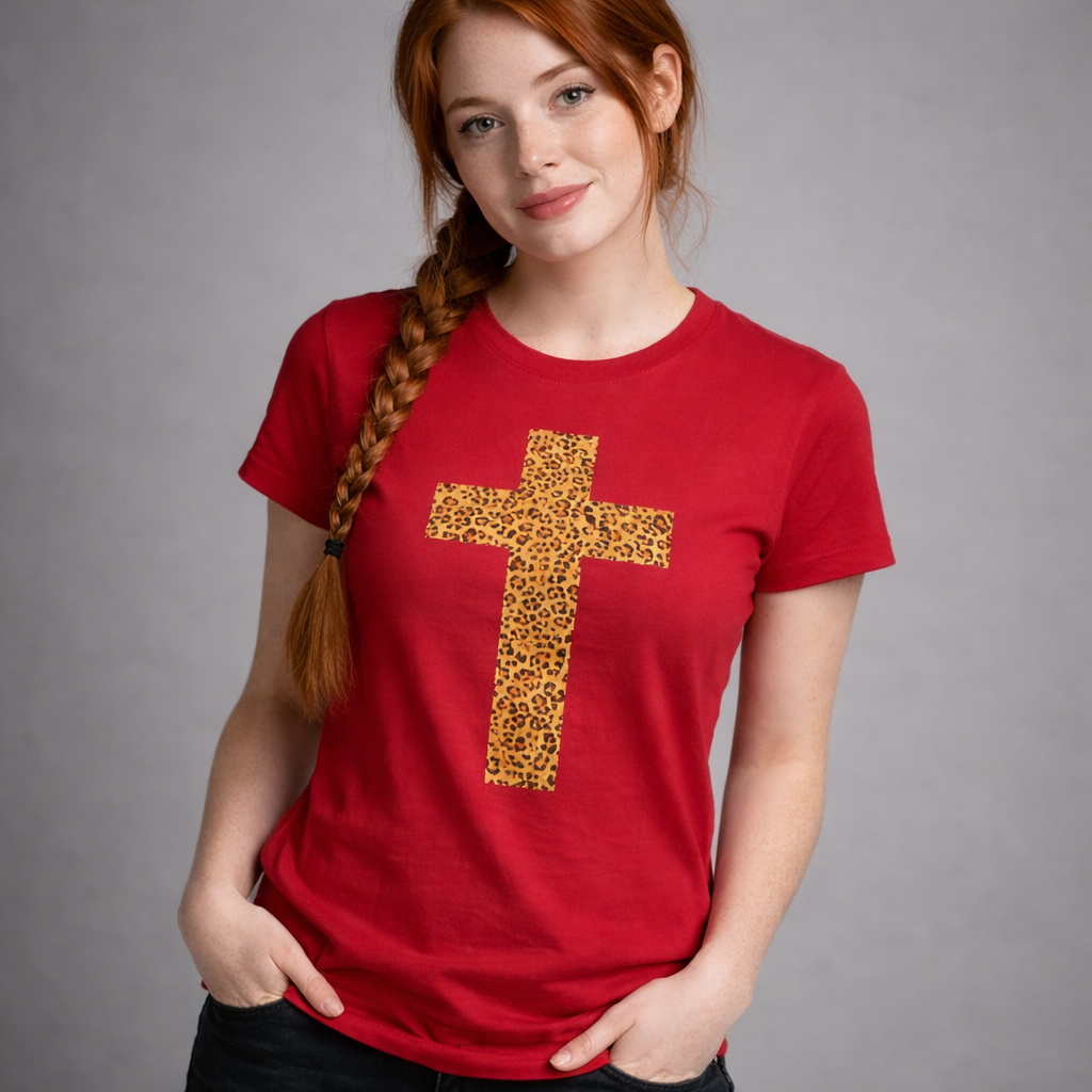 Camiseta negra con cruz estampada en diseño leopardo, una combinación audaz entre fe y estilo urbano. Confeccionada en algodón 100%, ligera y transpirable, ideal para quienes quieren expresar su identidad con personalidad y actitud moderna.