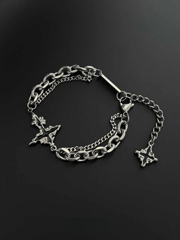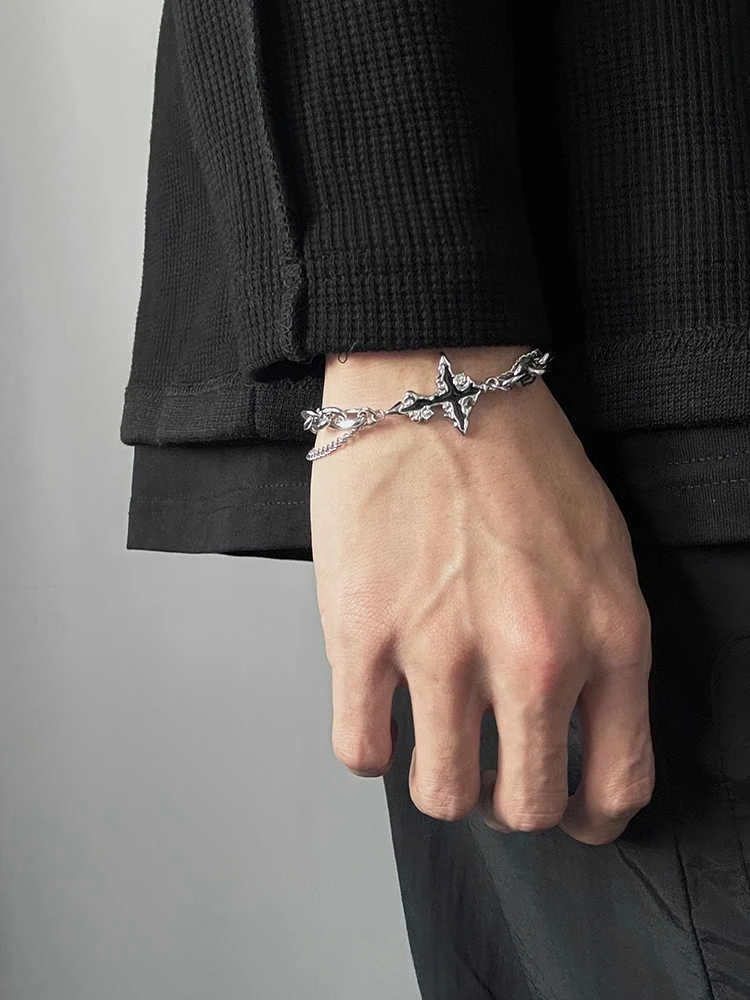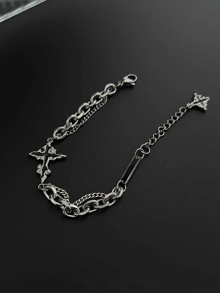 Pulsera cruzada de llama Retro para hombre y mujer, cadena de empalme de acero de titanio de Hip Hop, joyería Unisex, accesorios de lujo Kpop geniales